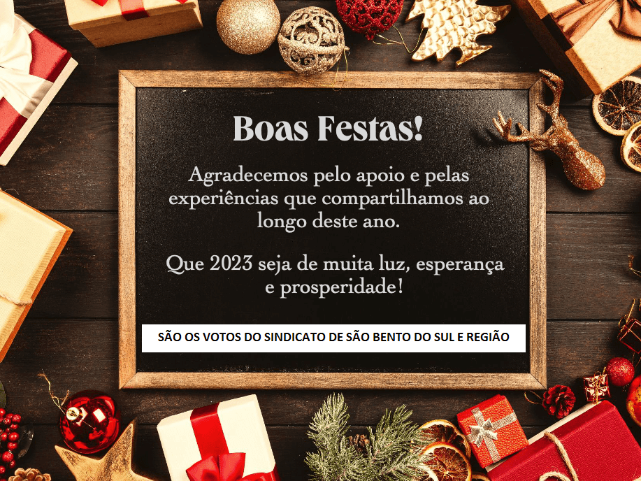 O Sindicato de São Bento do Sul e Região, estará em férias coletivas a partir do dia 21/12/2022 (quarta-feira) ao dia 04/01/2023, retornando suas atividades somente dia 05/01/2023 (quinta-feira).
